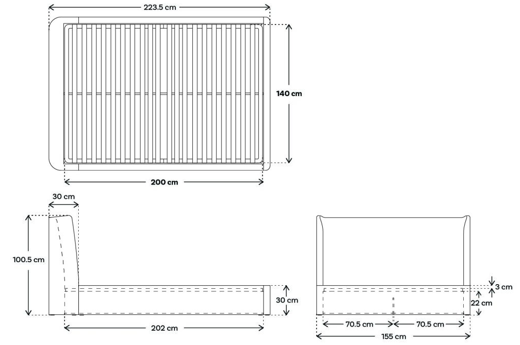 Sein Zusammenbau erfolgt schnell und einfach und erfordert kein Werkzeug. Dank des Gestells mit Hebemechanismus bietet das Bett 03 außerdem viel Stauraum, damit dein Schlafzimmer stets aufgeräumt aussieht und du immer gut schlafen kannst.