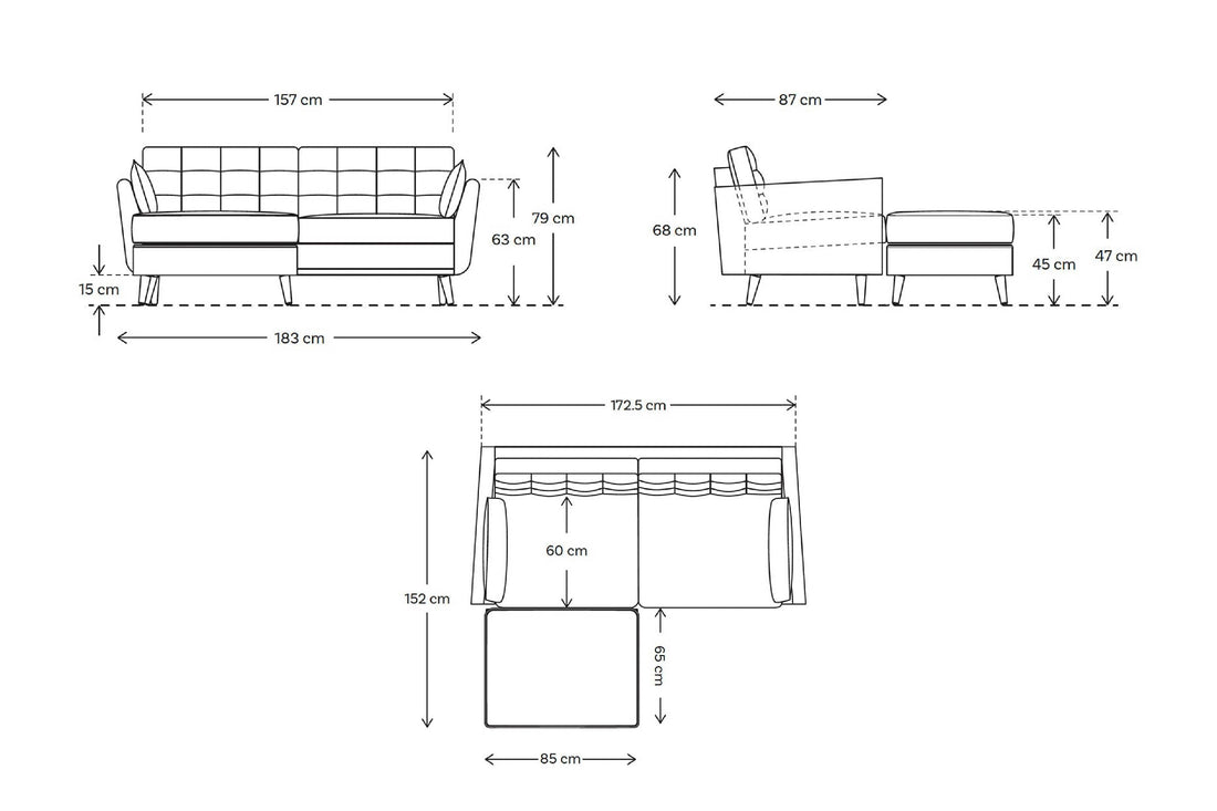 • Tiefe mit Hocker: 152cm